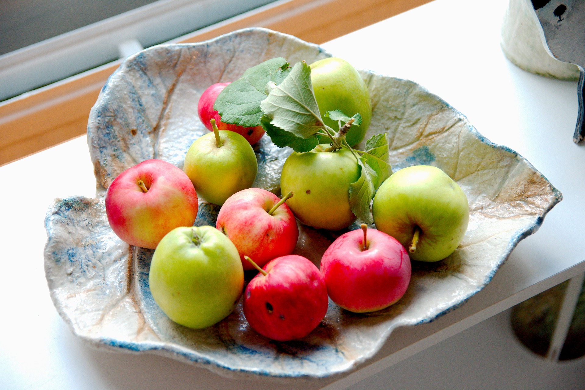 Raparperilehti vadiksi on monen keramiikkkaaa harjoittelevan ensimmäisiä kokeiluja.