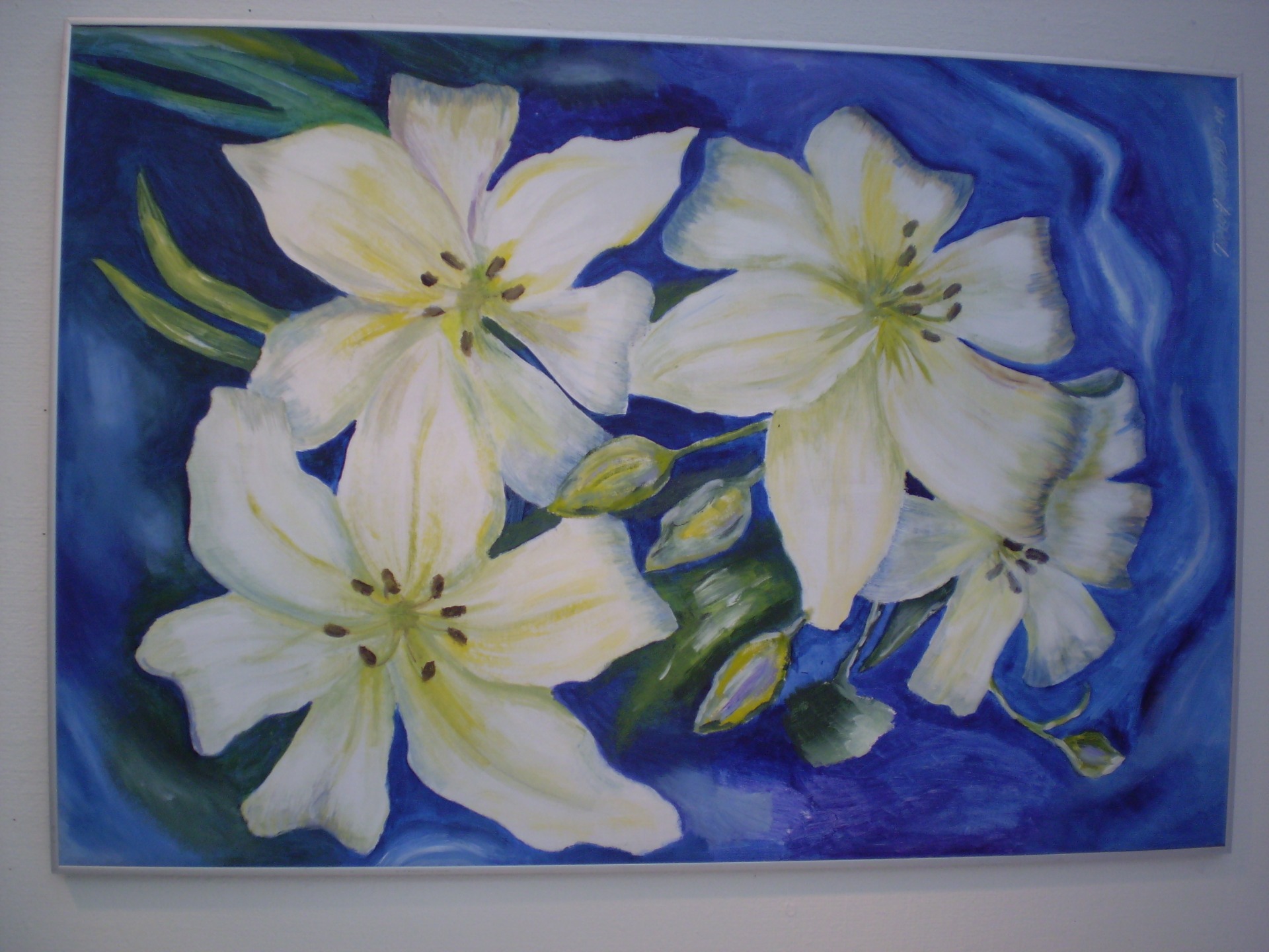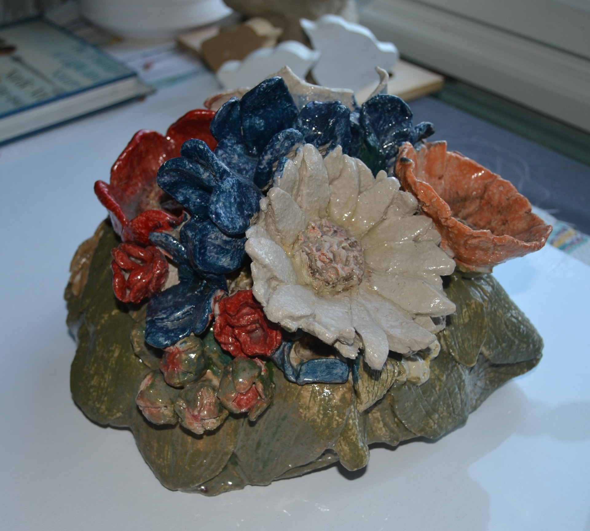Naivistinen keraaminen kukkaveistos v. 2001.